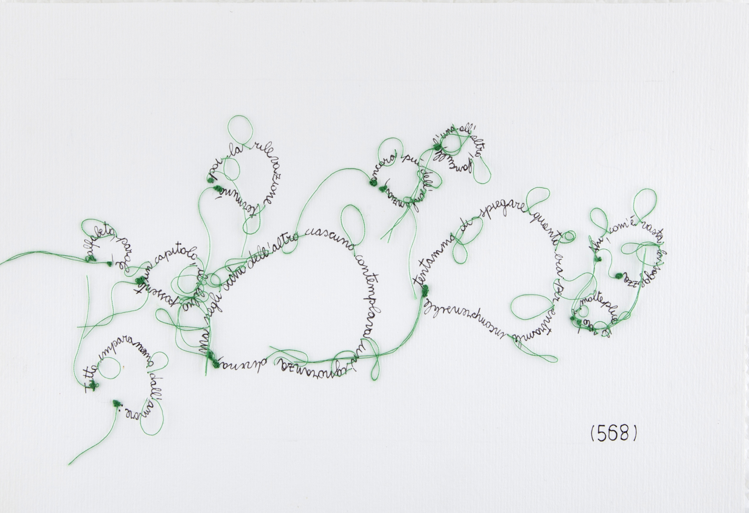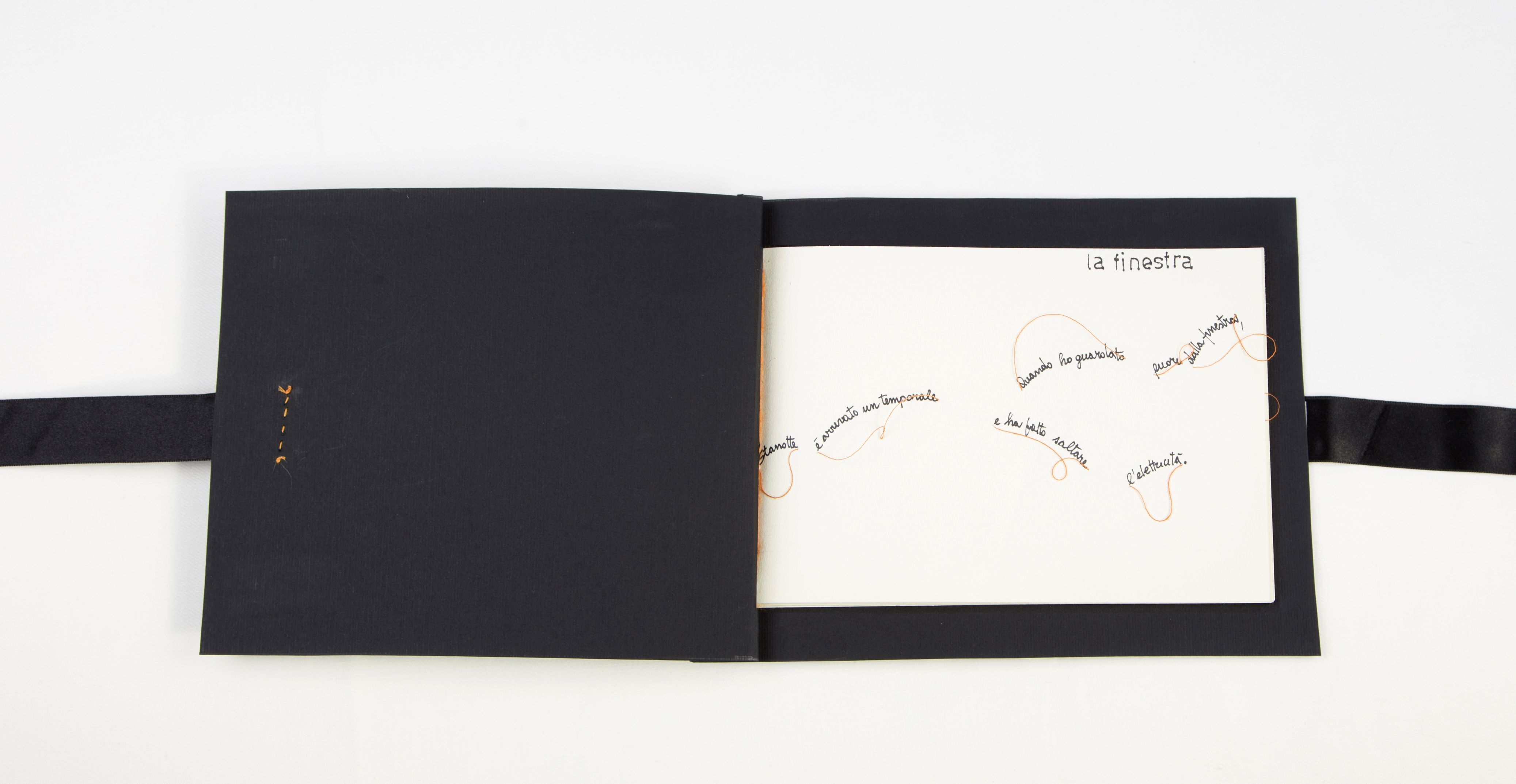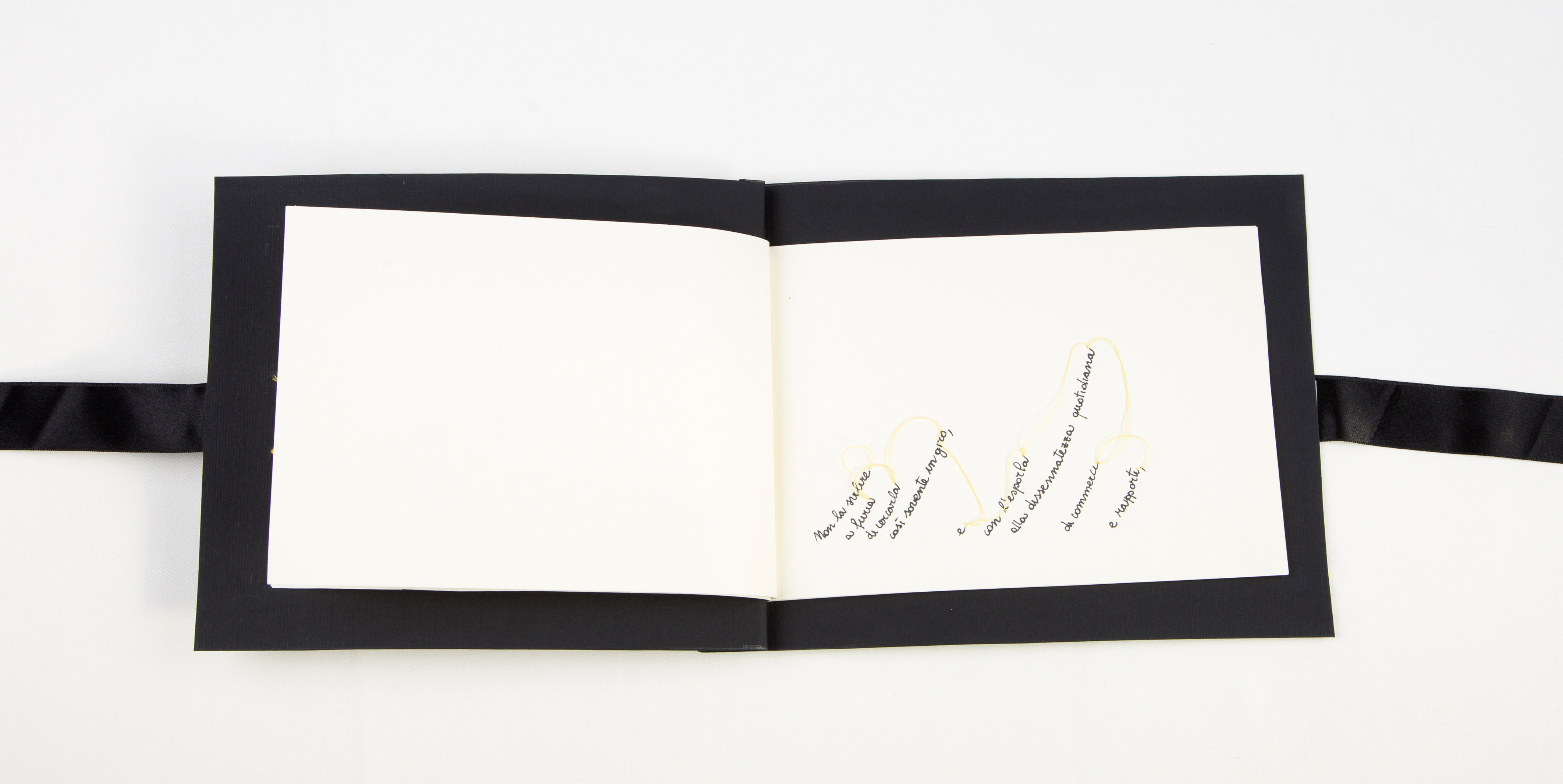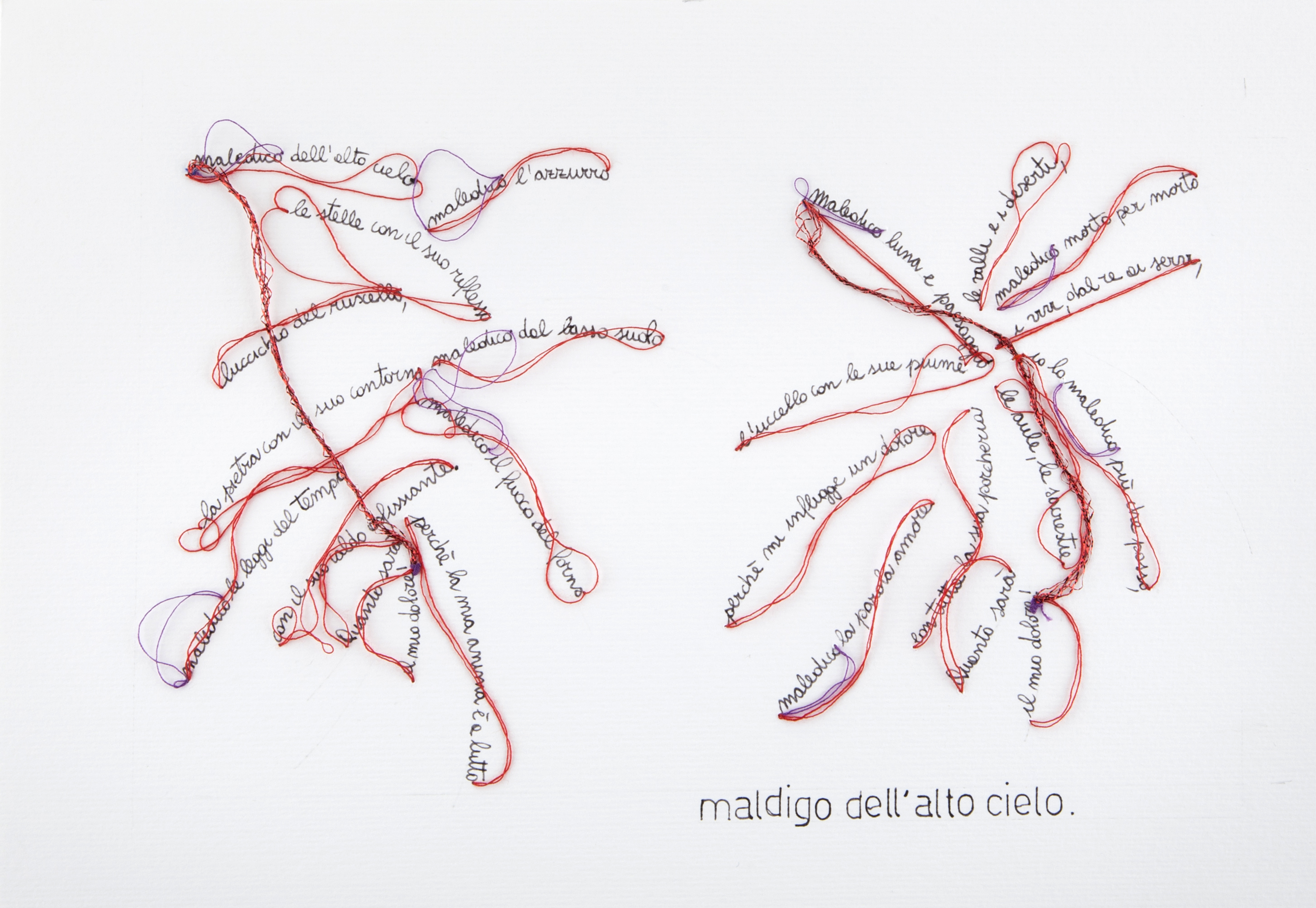 Lo spazio presente tra le parole e la loro disposizione sul foglio bianco vengono alterati e disegnati per dare corpo al silenzio e all’immaginazione che le parole richiedono.